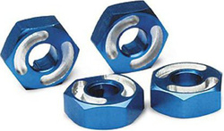 Unášače diskov kolies s čapmi. Unášač šesťhran 14 mm, hrúbka unášača 5,5 mm, otvor pre hriadeľ s priemerom 6 mm. Čapy priemer 2,5 mm, dĺžka 12,5 mm. Unášače sú vyrobené z modro eloxovaného hliníka.