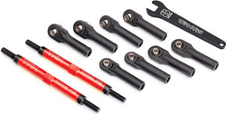 Červeno eloxované ojničky riadenia Traxxas 8638R s koncovkami. Dĺžka na stred ôk koncoviek je 144 mm, vyrobené z vysokopevnostnej hliníkovej zliatiny 7075-T6. Na zníženie hmotnosti je vnútorná časť spojovačiek dutá. Balenie obsahuje 2 kusy spojovačiek, 8 koncoviek s guľovými čapmi a kľúč.
