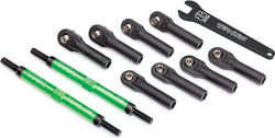 Zeleno eloxované ojničky riadenia Traxxas 8638G s koncovkami. Dĺžka na stred ôk koncoviek je 144 mm, vyrobené z vysokopevnostnej hliníkovej zliatiny 7075-T6. Na zníženie hmotnosti je vnútorná časť spojovačiek dutá. Balenie obsahuje 2 kusy spojovačiek, 8 koncoviek s guľovými čapmi a kľúč.