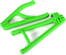 Náhradný diel pre RC modely áut Traxxas E-Revo 1:8 VXL: ramená závesu kolies zadnej pravej zelenej - tuningový diel. Otvory pre nastaviteľný rázvor.