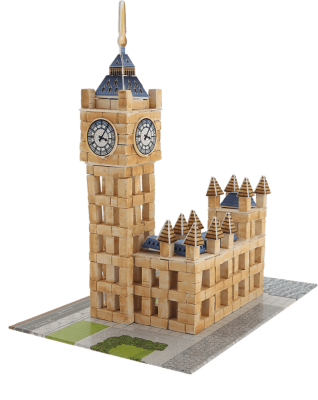 Postavte najznámejší symbol Veľkej Británie - Big Ben, pomocou skutočných tehál a dekoratívnych prvkov.