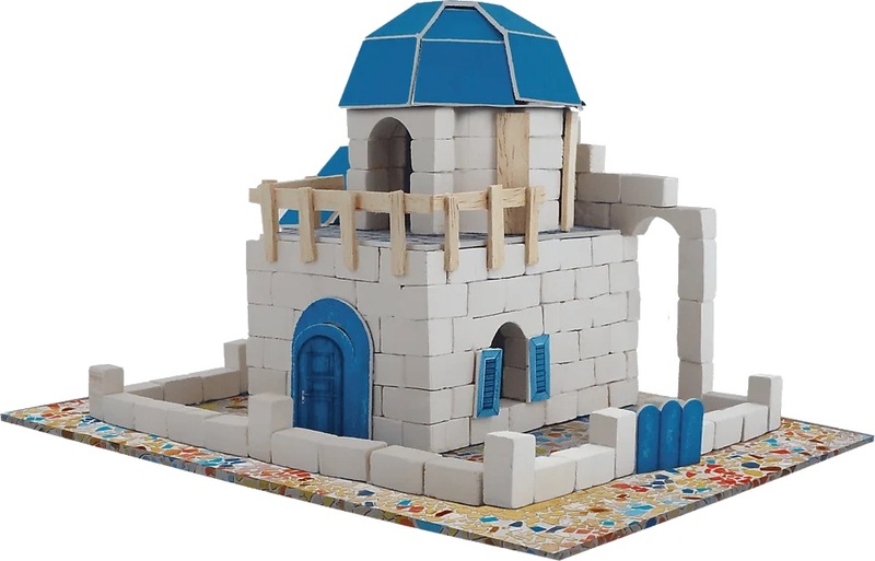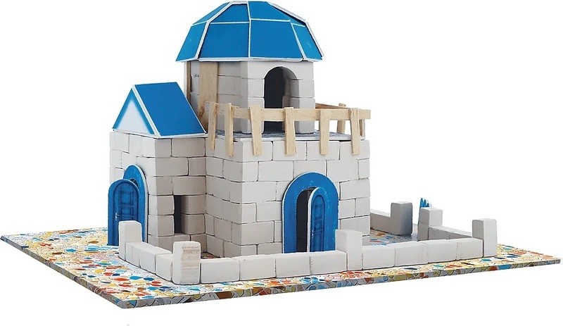 Postavte domček typický pre Santorini zo skutočných tehál a dekoratívnych prvkov.