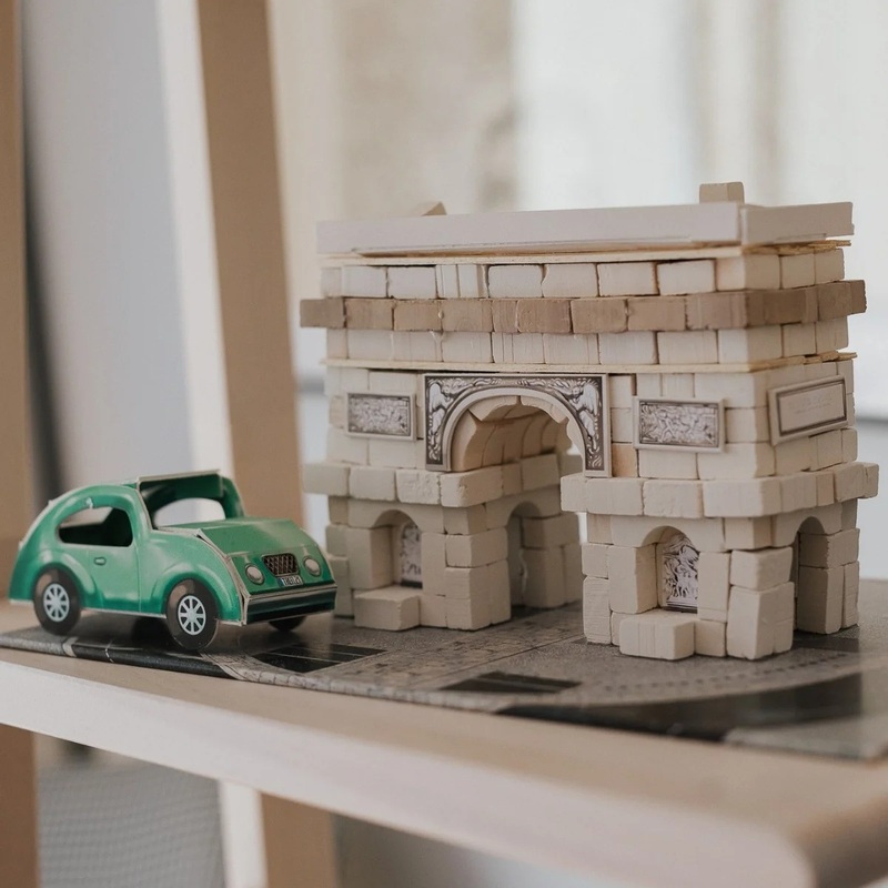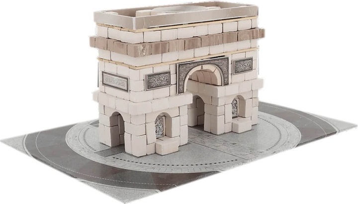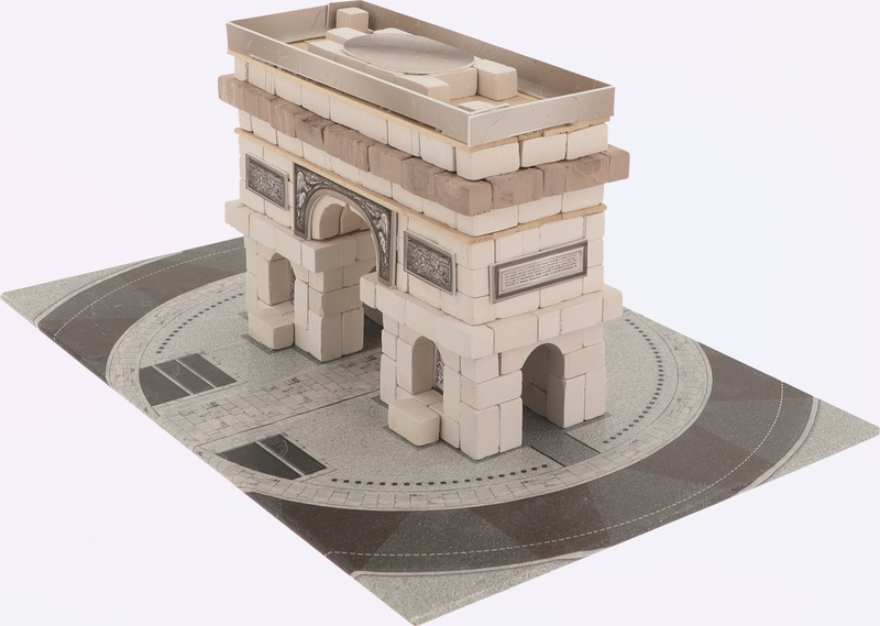 Postavte symbol Paríža - Víťazný oblúk zo skutočných tehál a dekoratívnych prvkov.