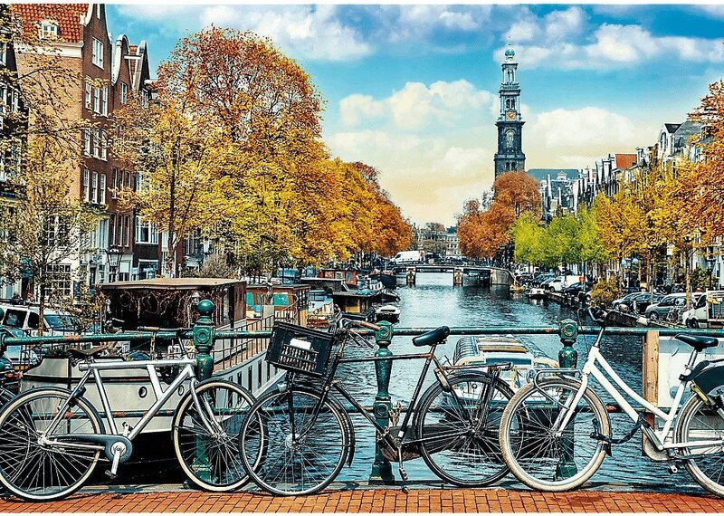 Puzzle ukazujú malebnú jeseň v Amsterdame. Po položení vznikne obraz s rozmermi 683x480 mm.