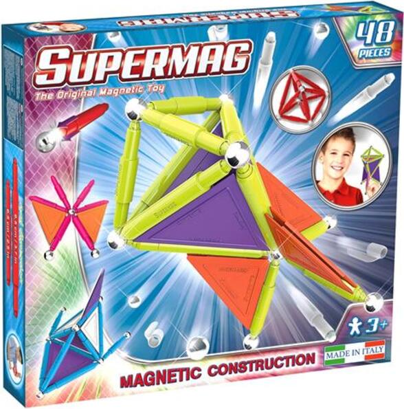 Magnetické kocky Supermag Trendy – sada obsahuje 48 magnetických dielikov pre kreativne stavanie a výkon mozgu detí.