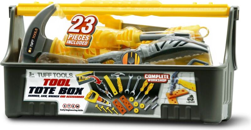 Detská súprava náradia v praktickom kufríku Tuff Tools. Rukoväť kufríka je možné vybrať a použiť ako pravítko. Set poskytuje deťom možnosť hrať sa na malých majstrov a rozvíjať svoju zručnosť a predstavivosť.