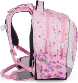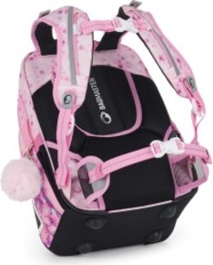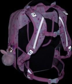 - Ramenné popruhy a chrbtový systém sú mäkko polstrované. Popruhy sú nastaviteľné pomocou hornej a dolnej plastovej pracky. Dĺžku je potrebné upravovať podľa toho, ako školáčka rastie. Konce popruhov sú magnetické. Aby sa nezosúvali, stačí ich pomocou magnetu pripnúť na plastovú pracku.