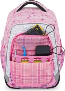 - Má tri priestranné priehradky. Do hlavného sa zmestia veľké školské zakladače, ako aj učebnice a zošity formátu A4. Hlavná komora má aj kompresné vrecko s elastickými bočnými popruhmi na zakladače A4 a veľké učebnice. Pomáha ťahať a držať ťažké pomôcky čo najbližšie k chrbtu, takže školák alebo školáčka má ťažisko blízko chrbtice a pri chôdzi sa nehrbí.