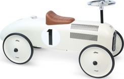 Odrážadlo Vintage v štýle pretekárskeho auta je kovové a má krémovú metalickú farbu. Volantom sa ovláda otáčanie predných kolies. Hnedé sedadlo je vyrobené z plastu. Kolesá sú pogumované, a tak zaručujú tichý chod aj na tvrdom povrchu.