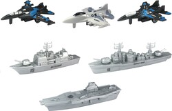 Pripravte sa na dobrodružstvo plné akcie s touto úžasnou vojenskou sadou, ktorá poteší každého malého stratéga! Set obsahuje 3 detailne prepracované vojenské lode a 3 bojové lietadlá, s ktorými si deti môžu vytvárať vlastné napínavé misie na mori aj vo vzduchu. Táto vojenská sada je perfektný darček pre malých fanúšikov lietadiel, lodí a armádnych dobrodružstiev!