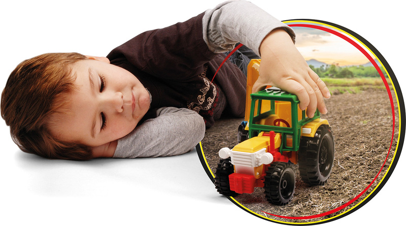 Hra s dopravnými prostriedkami, ako je Traktor zo série Color Cars, stimuluje kreativitu a predstavivosť dieťaťa, zlepšuje jeho manuálne a motorické zručnosti, rozvíja koordináciu ruka-oko, prehlbuje jeho vedomosti a uspokojuje potrebu objavovať svet. Vozidlo je ideálne na hranie samostatne alebo v skupine, čo podporuje integráciu s rovesníkmi. Všetky prvky sú vyrobené z kvalitného odolného materiálu odolného voči rôznym poveternostným vplyvom, vďaka čomu hračka dokonale splní svoj účel na pláži, doma alebo v pieskovisku.