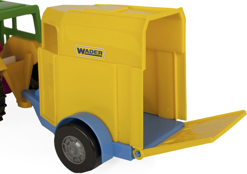 - Hra s prívesom na traktor a kone zo série Color Cars od Wader stimuluje kreativitu a predstavivosť dieťaťa, zlepšuje jeho manuálne a motorické zručnosti, rozvíja koordináciu oko-ruka, prehlbuje jeho vedomosti a uspokojuje potrebu objavovať svet, a podporuje integráciu s rovesníkmi.