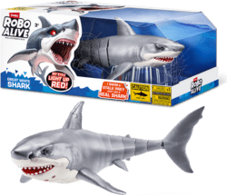 Chcete skrotiť veľkého bieleho žraloka Robo Alive, alebo budete jeho ďalšou korisťou? Veľký biely žralok ožíva vďaka pokročilej vode aktivovanej technológii ZURU a pláva ako skutočný žralok. O chvíľu budete mať svojich priateľov a rodinu vyžartovaných. S divokými, žiariacimi očami a živými pohybmi je tento žralok na love!